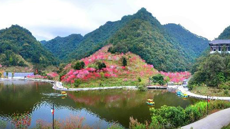 景区半山处分别建有各色亭台楼榭,以便游人观赏美景,分别取名为醉春亭,悦色亭,云从亭,游心亭,晤对亭。