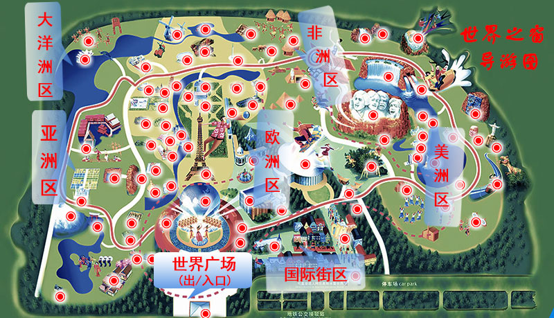 出发前我们先下载了景区的导游图,或者到了景区门口直接领取纸质的也可以。按着导游图慢慢游览,这样子就不会错过一些景点与表演啦! 一般的游览顺序是世界广场(入口)-亚洲区-大洋区-非洲区-美洲区-欧洲区-雕塑园区、国际街区-世界广场(出口)。可以边参观各式建筑物拍照,边选择自己感兴趣的表演观看。